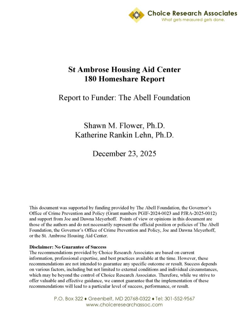 As Principal Researcher of Choice Research Associates, Shawn M. Flower, Ph.D. has worked as a Program Evaluator in the field of Criminal Justice Research since 2002 and has a solid foundation working with program administrators, direct service providers, and funding agencies.